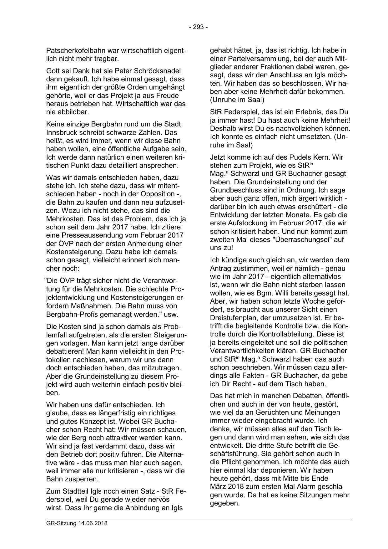 Zum Stadtteil Igls noch einen Satz - StR Federspiel, weil Du gerade wieder nervös