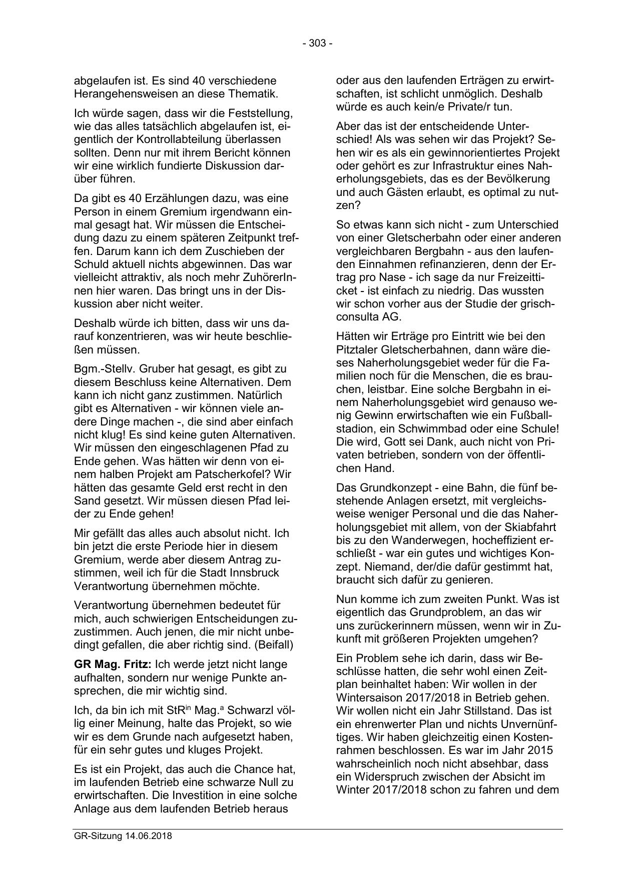 Gremium, werde aber diesem Antrag zustimmen, weil ich für die Stadt Innsbruck