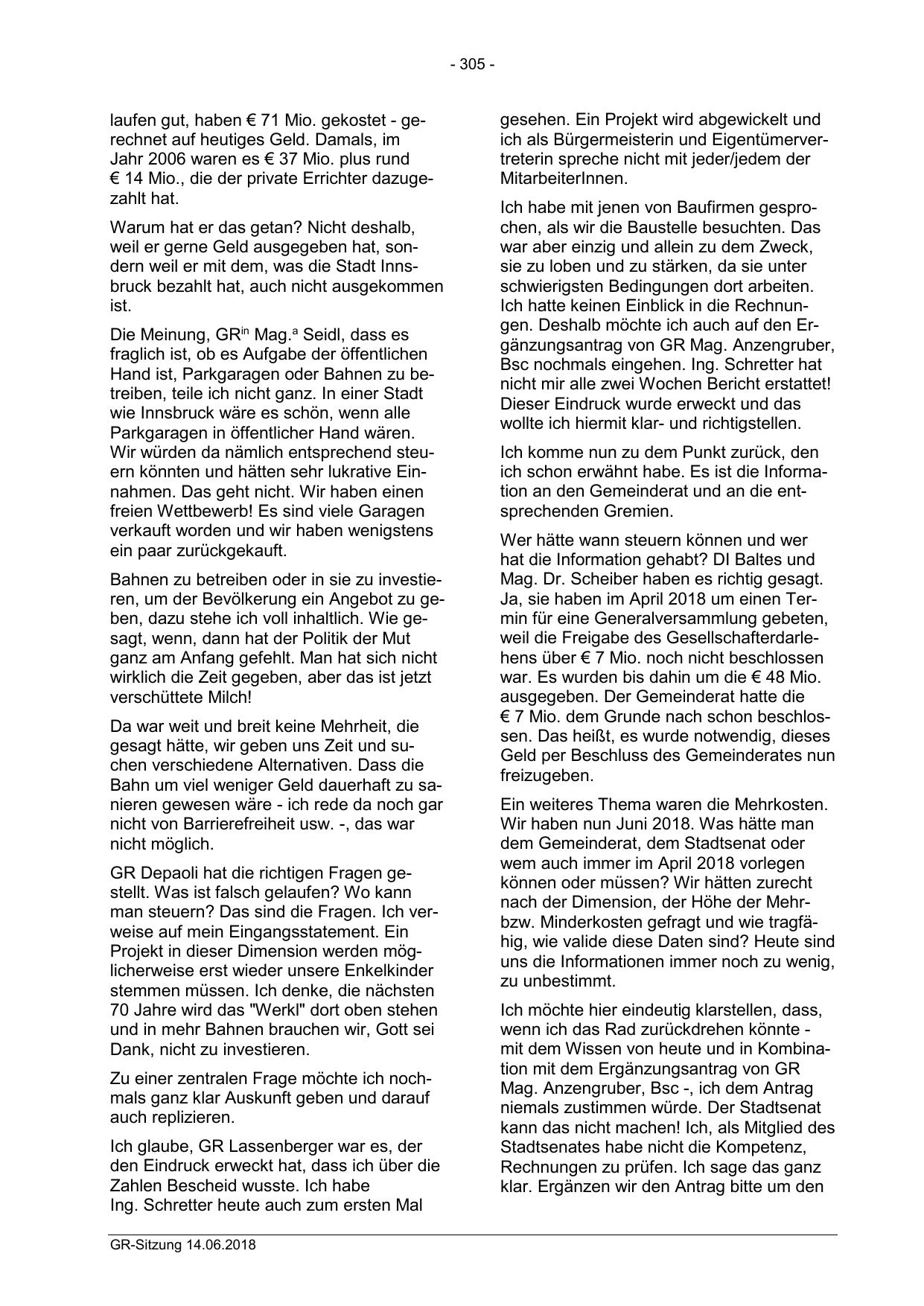weil er gerne Geld ausgegeben hat, sondern weil er mit dem, was die Stadt Innsbruck bezahlt hat, auch nicht ausgekommen