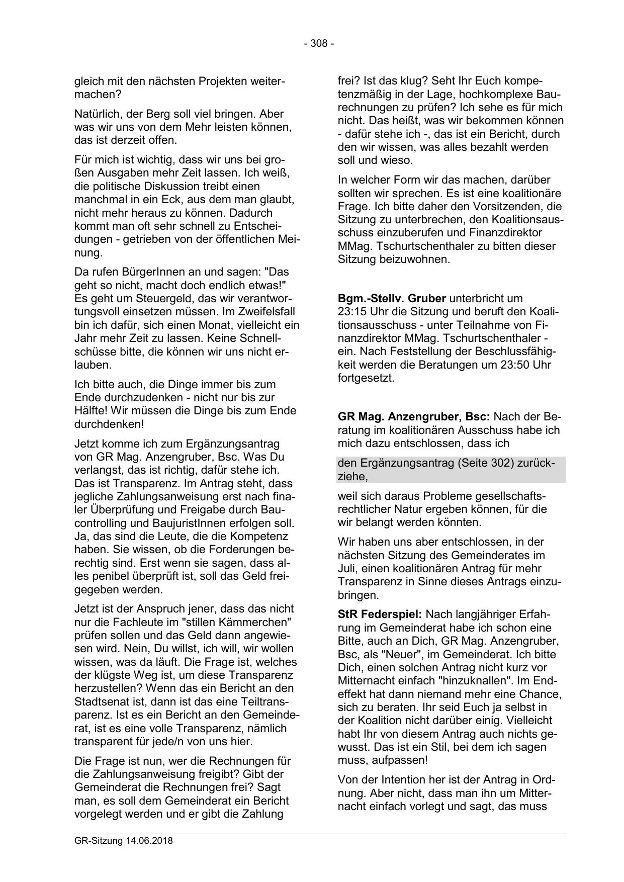 Stadtsenat ist, dann ist das eine Teiltransparenz. Ist es ein Bericht an den Gemeinderat, ist es eine volle Transparenz, nämlich