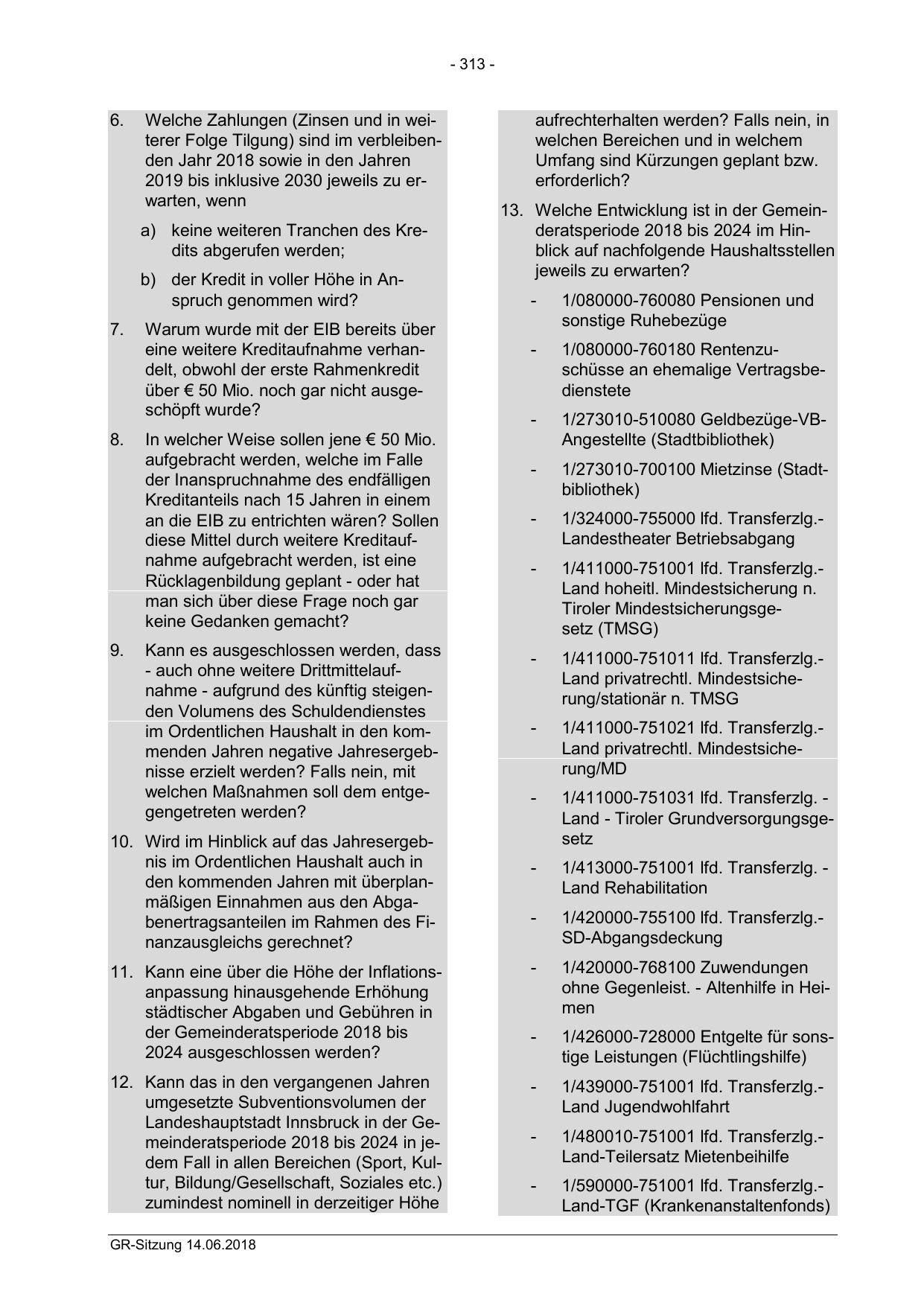 Landeshauptstadt Innsbruck in der Gemeinderatsperiode 2018 bis 2024 in jedem Fall in allen Bereichen (Sport, Kultur, Bildung/Gesellschaft, Soziales etc.)