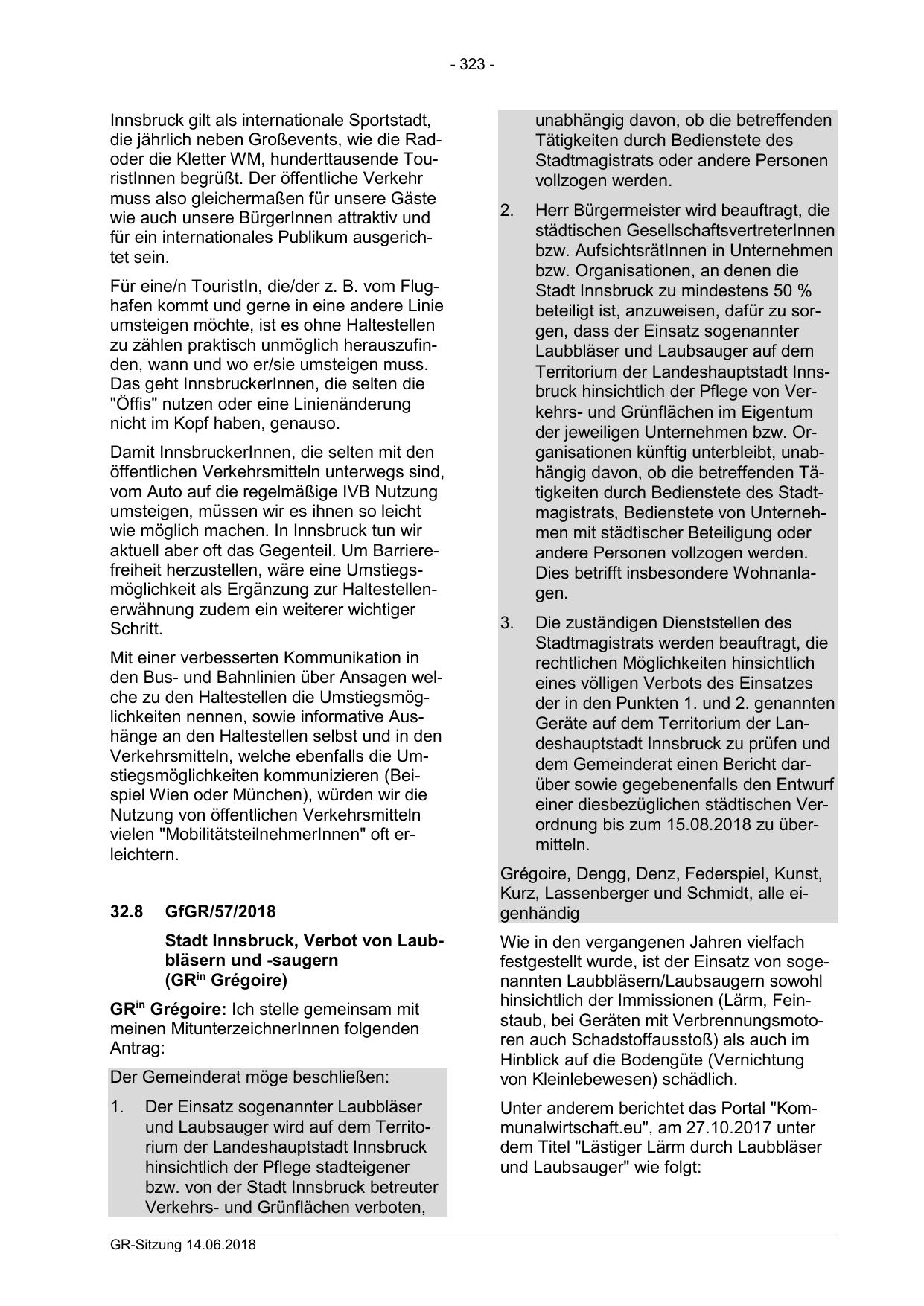Stadt Innsbruck, Verbot von Laubbläsern und -saugern