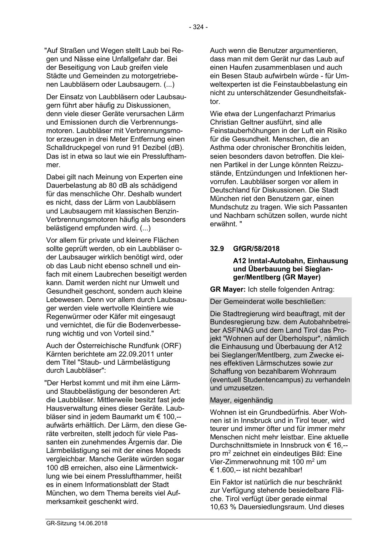 Bundesregierung bzw. dem Autobahnbetreiber ASFINAG und dem Land Tirol das Projekt "Wohnen auf der Überholspur", nämlich