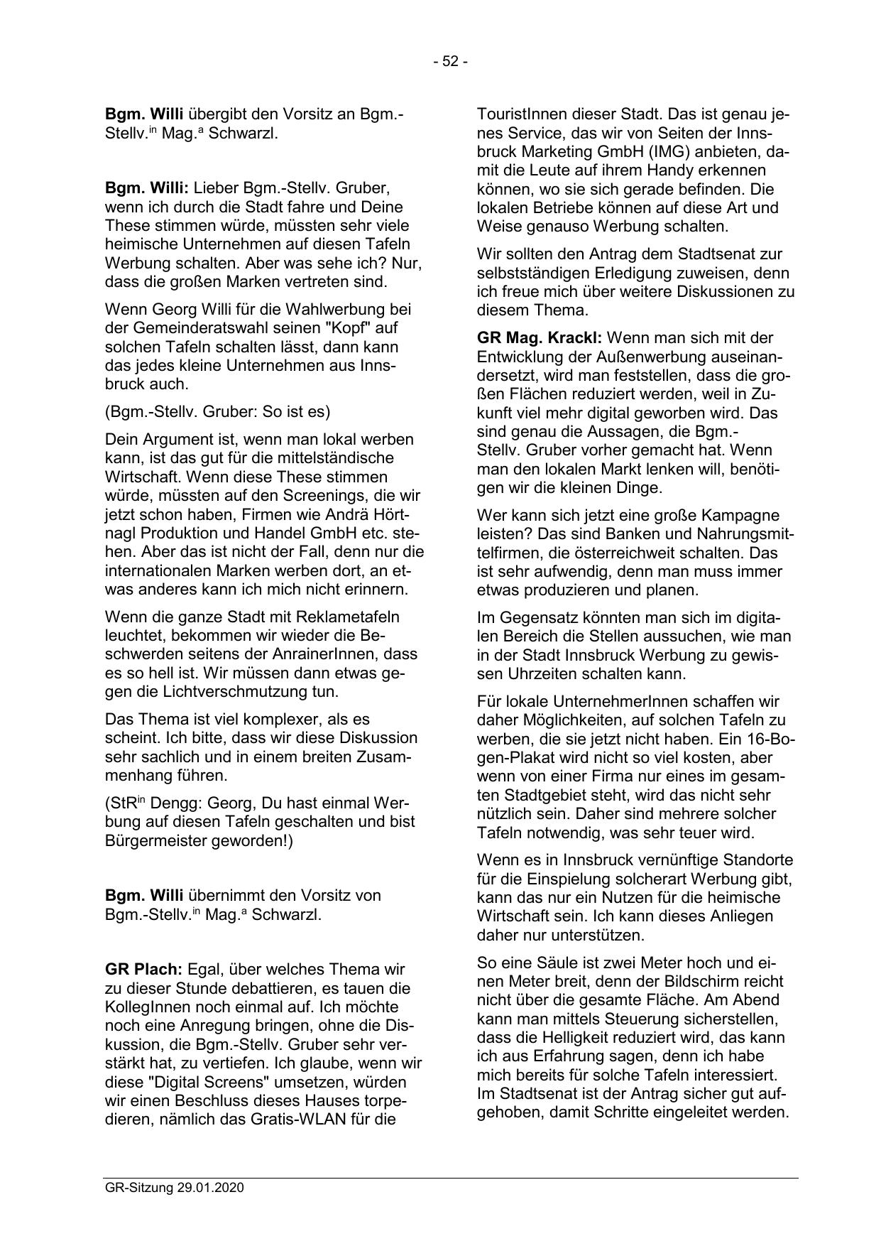 in der Stadt Innsbruck Werbung zu gewissen Uhrzeiten schalten kann.