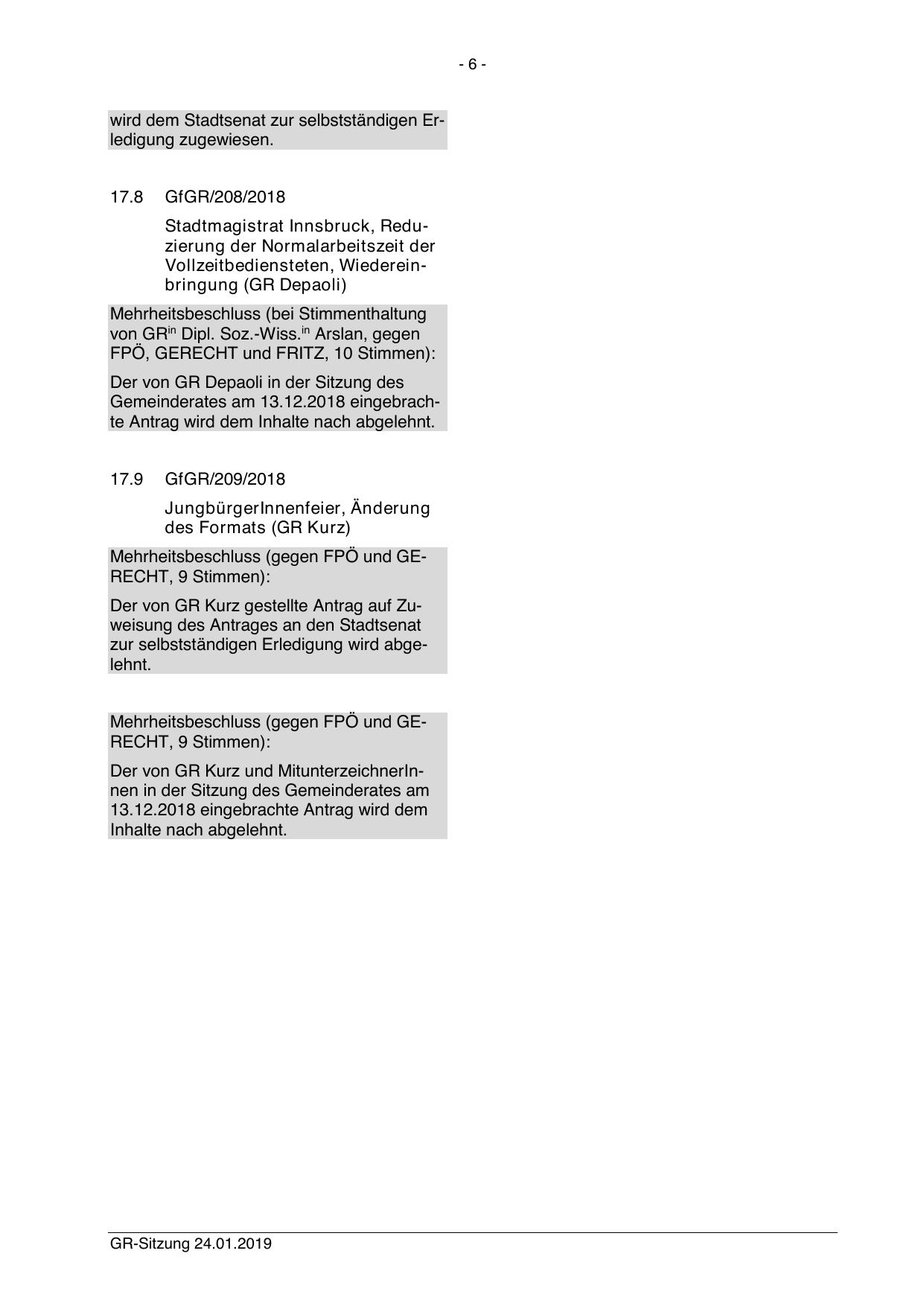 Gemeinderates am 13.12.2018 eingebrachte Antrag wird dem Inhalte nach abgelehnt.