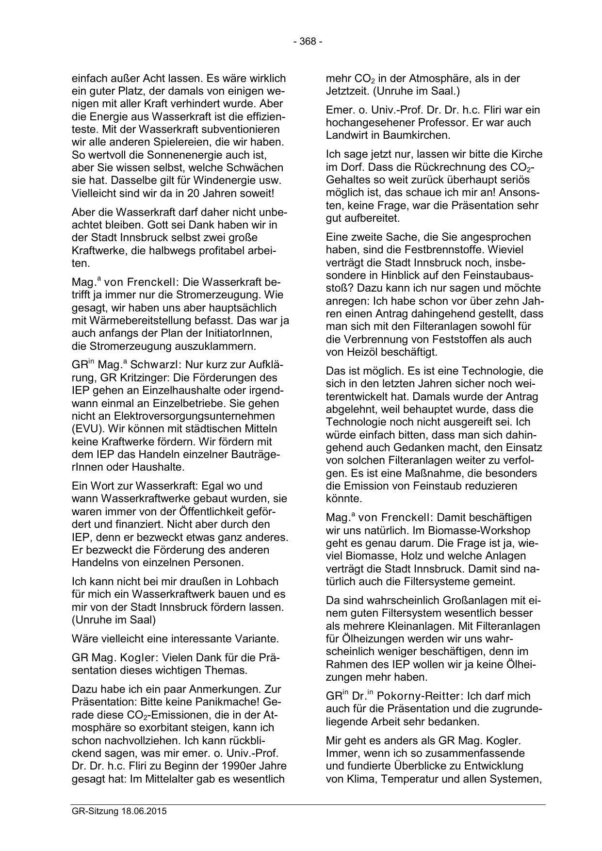 verträgt die Stadt Innsbruck. Damit sind natürlich auch die Filtersysteme gemeint.