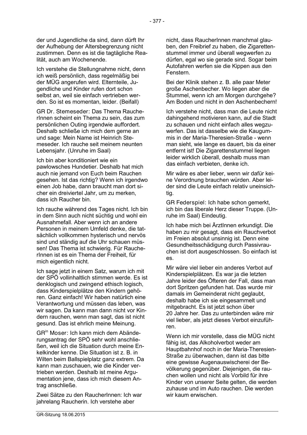 GR Dr. Stemeseder: Das Thema RaucherInnen scheint ein Thema zu sein, das zum