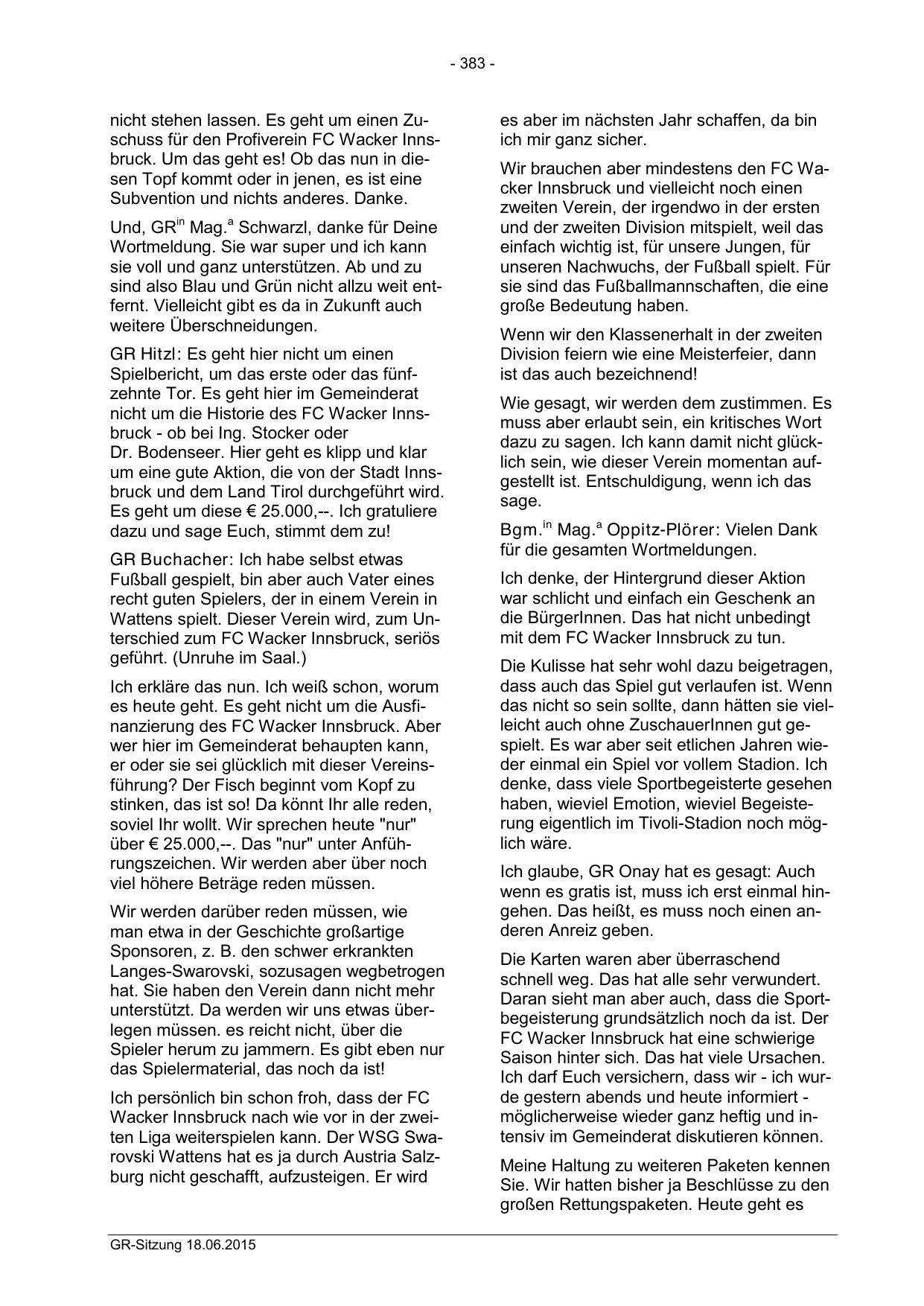 es heute geht. Es geht nicht um die Ausfinanzierung des FC Wacker Innsbruck. Aber