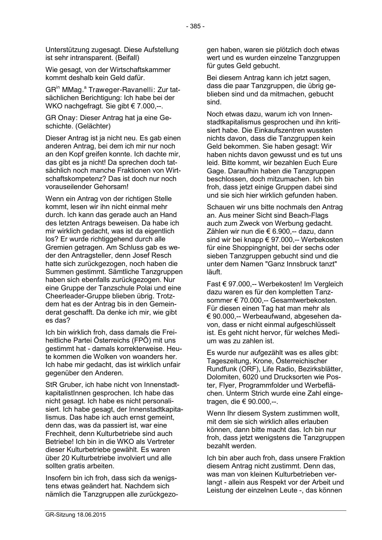 nämlich die Tanzgruppen alle zurückgezoGR-Sitzung 18.06.2015