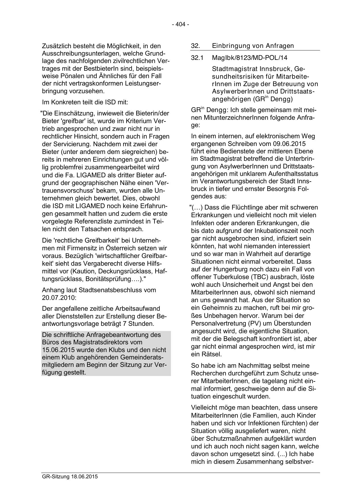 im Verantwortungsbereich der Stadt Innsbruck in tiefer und ernster Besorgnis Folgendes aus: