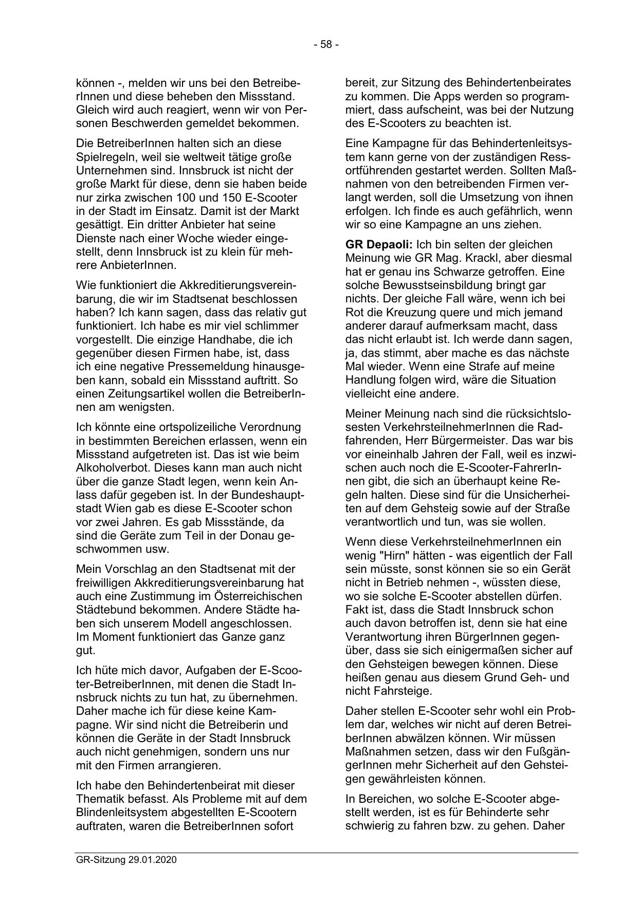 Ich hüte mich davor, Aufgaben der E-Scooter-BetreiberInnen, mit denen die Stadt Innsbruck nichts zu tun hat, zu übernehmen.