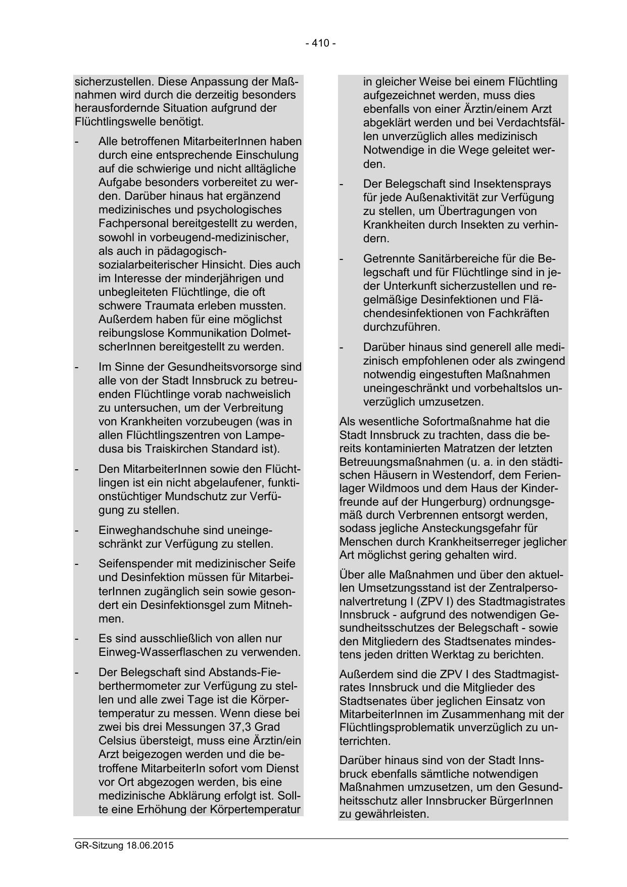 Maßnahmen umzusetzen, um den Gesundheitsschutz aller Innsbrucker BürgerInnen