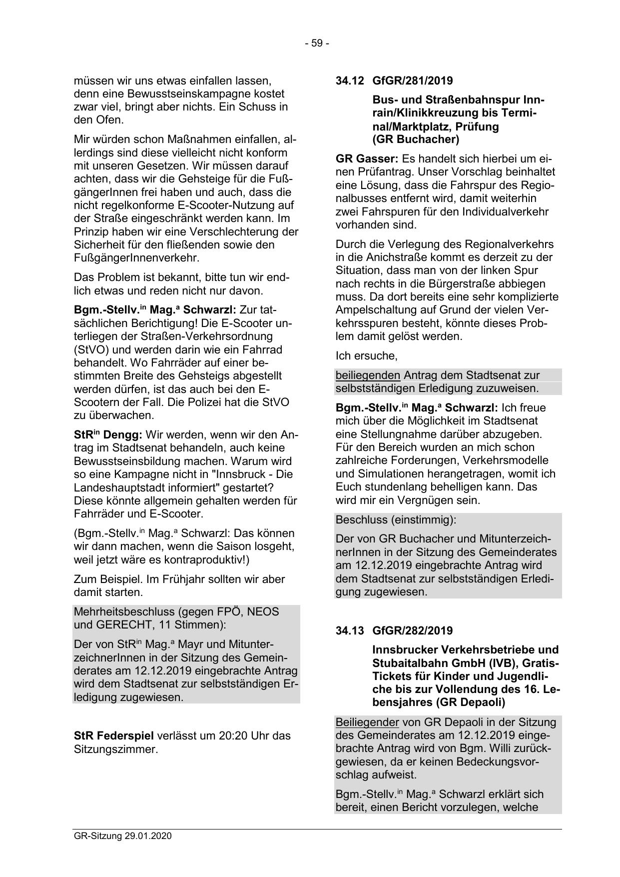 Der von StRin Mag.a Mayr und MitunterzeichnerInnen in der Sitzung des Gemeinderates am 12.12.2019 eingebrachte Antrag