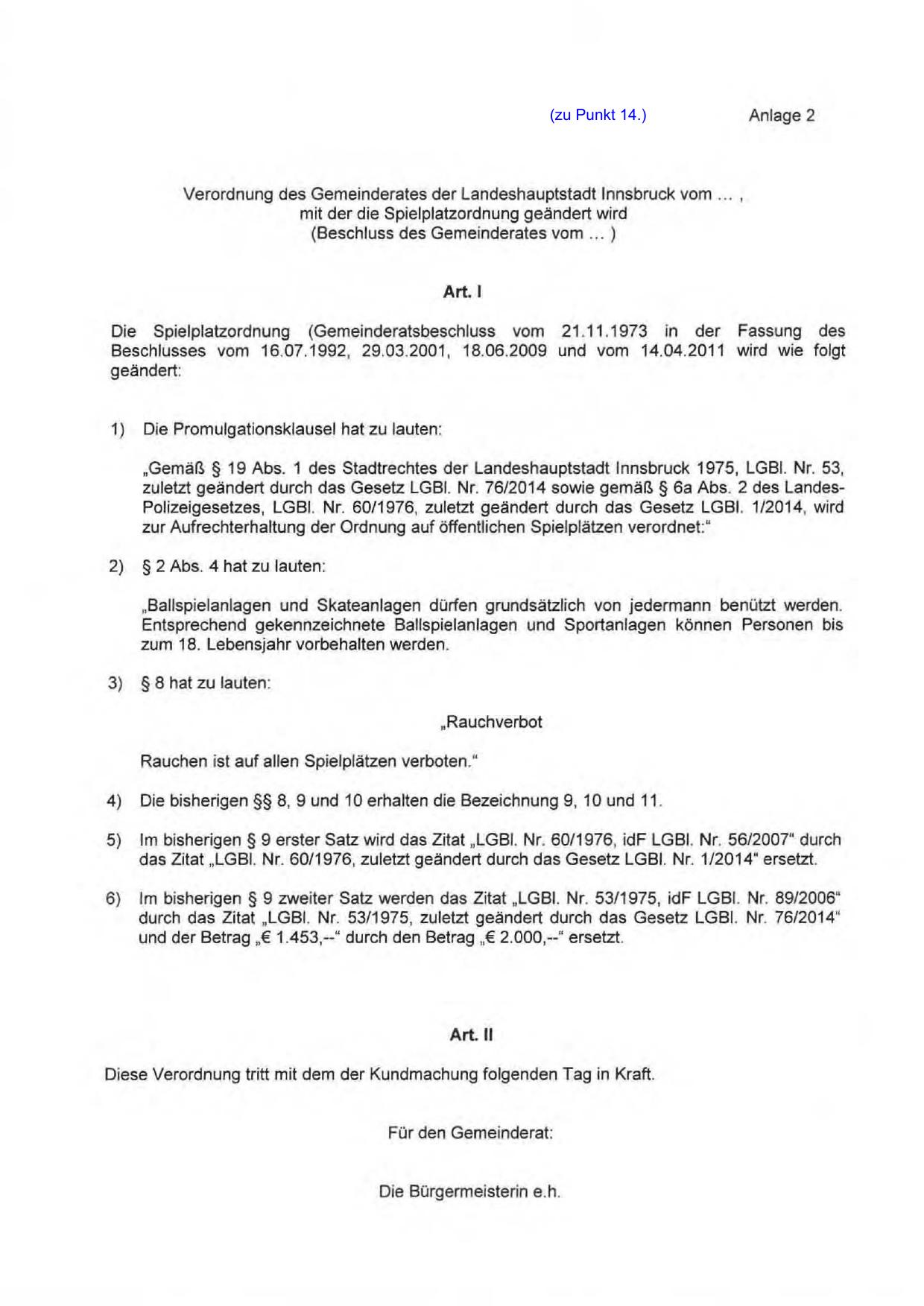 Verordnung des Gemeinderates der Landeshauptstadt Innsbruck vom .. . ,