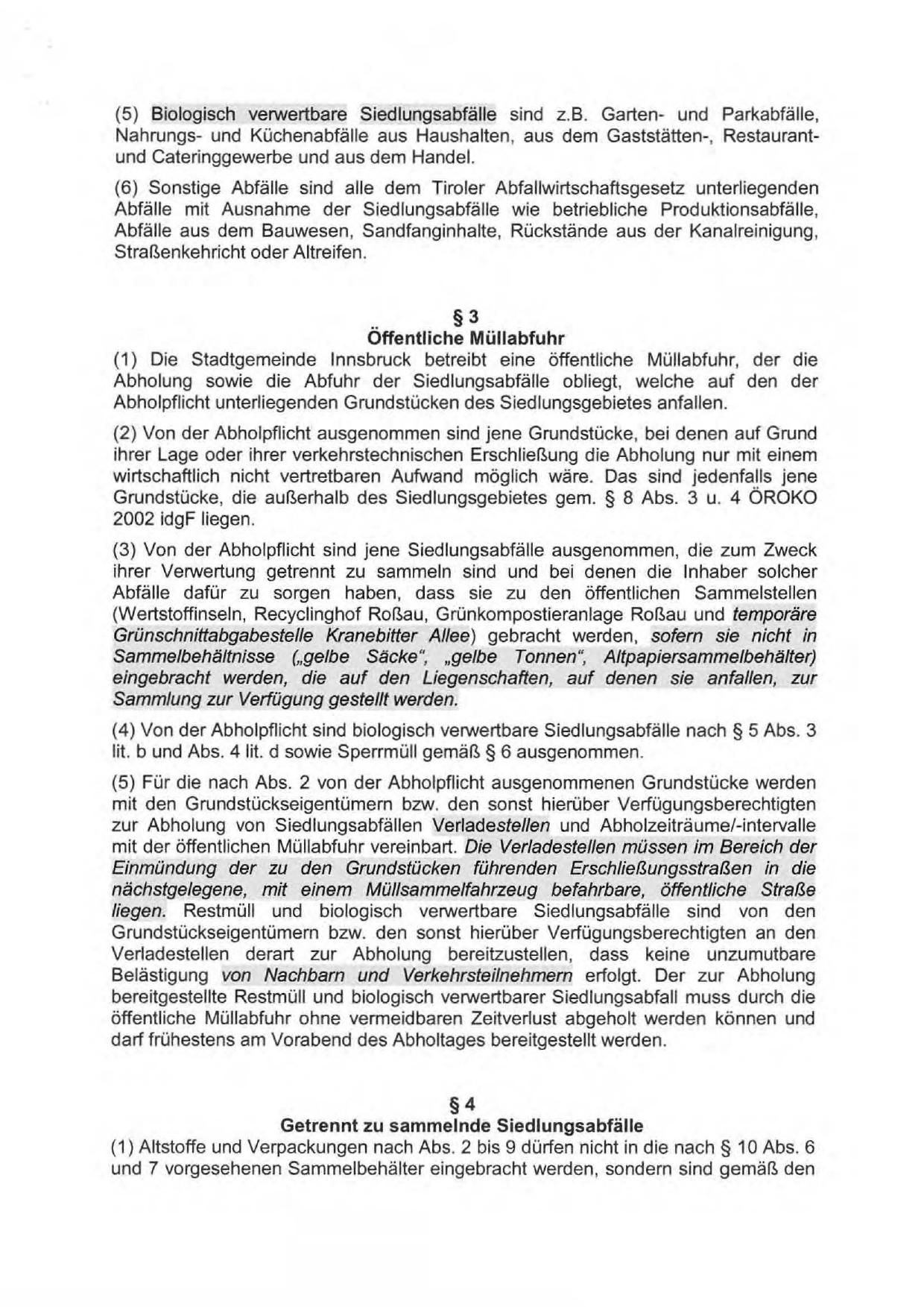 (1) Die Stadtgemeinde Innsbruck betreibt eine öffentliche Müllabfuhr, der die
