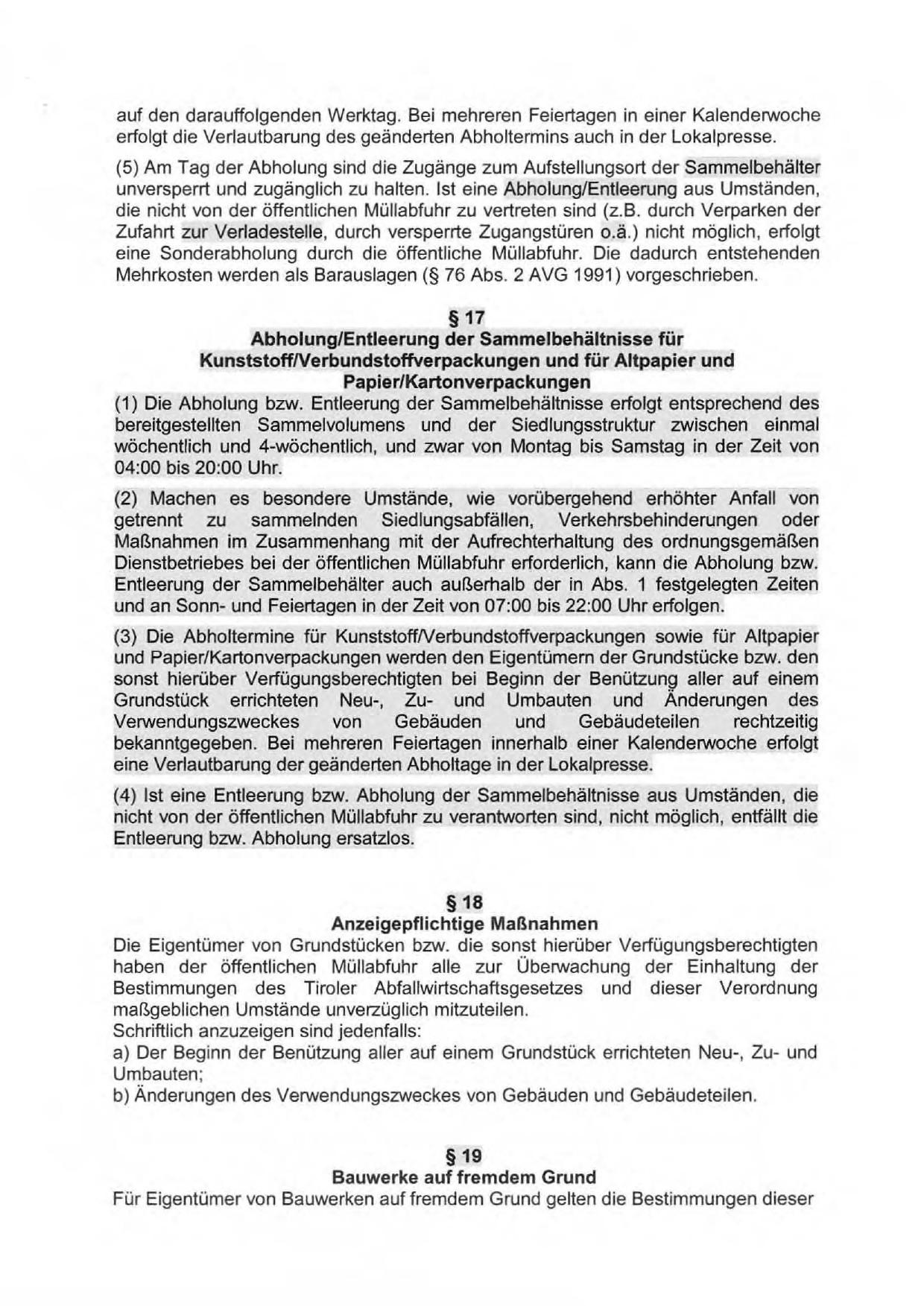 Bestimmungen des Tiroler Abfallwirtschaftsgesetzes und dieser Verordnung