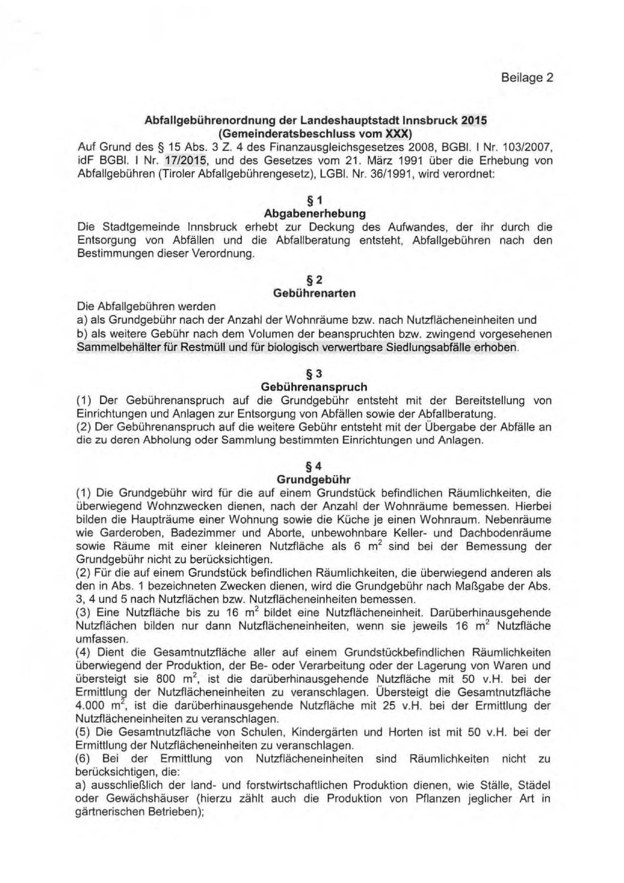 Abfallgebührenordnung der Landeshauptstadt Innsbruck 2015