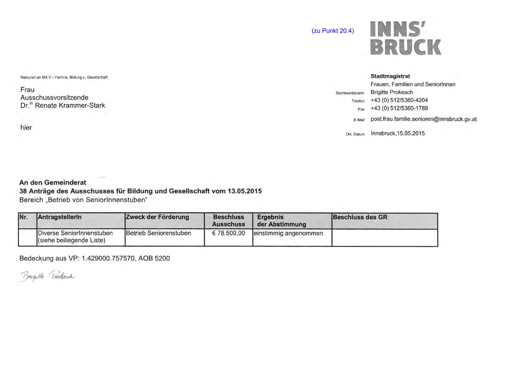 38 Anträge des Ausschusses für Bildung und Gesellschaft vom 13.05.2015