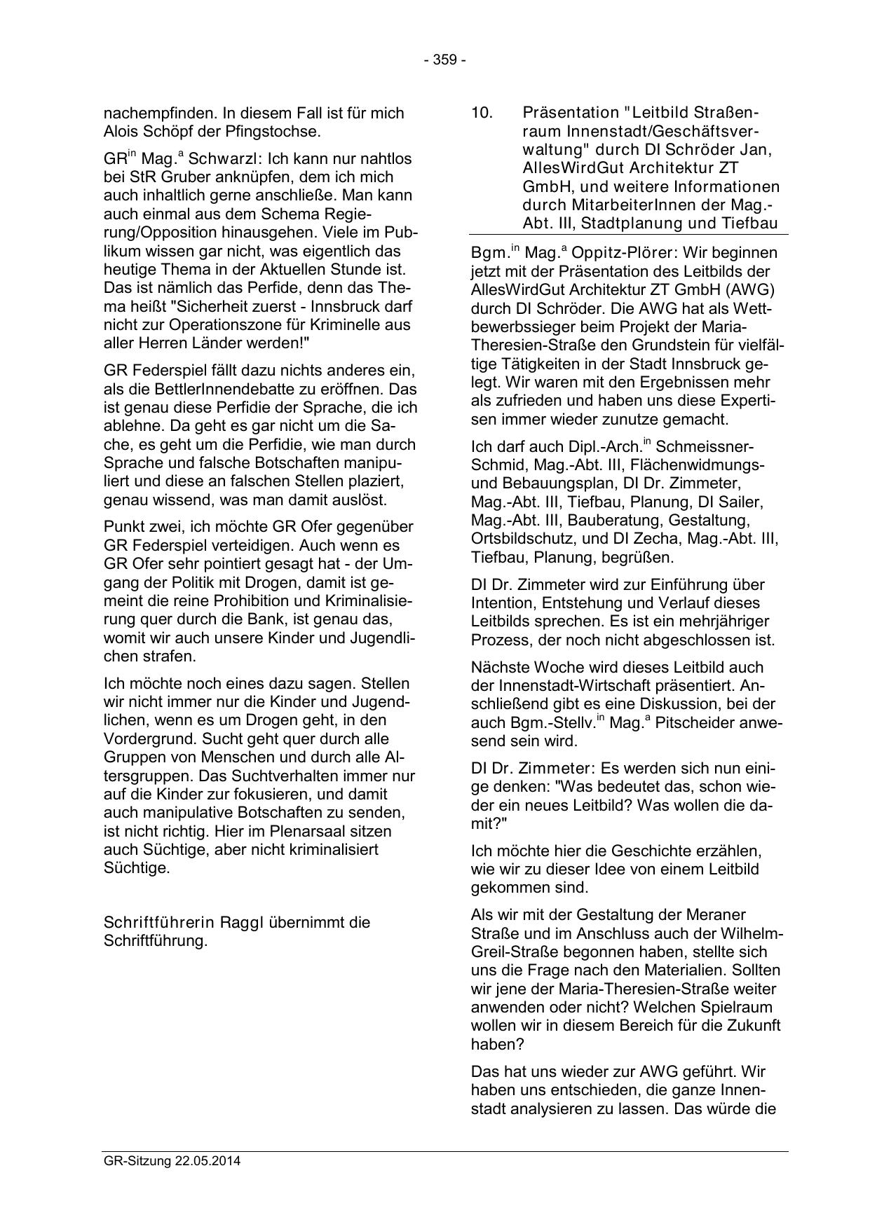 Ich darf auch Dipl.-Arch.in SchmeissnerSchmid, Mag.-Abt. III, Flächenwidmungsund Bebauungsplan, DI Dr. Zimmeter,