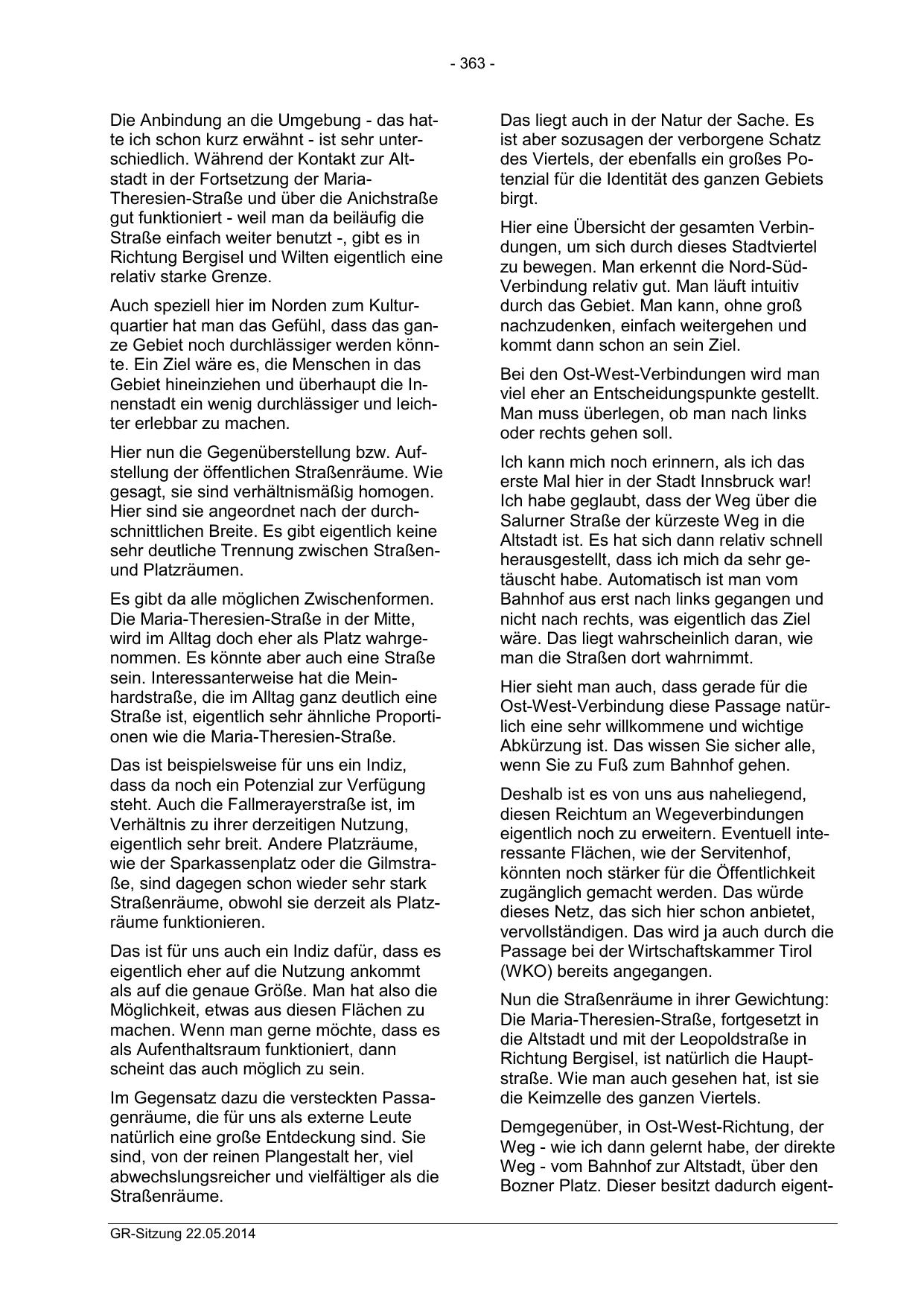 Die Anbindung an die Umgebung - das hatte ich schon kurz erwähnt - ist sehr unterschiedlich. Während der Kontakt zur Altstadt in der Fortsetzung der MariaTheresien-Straße und über die Anichstraße