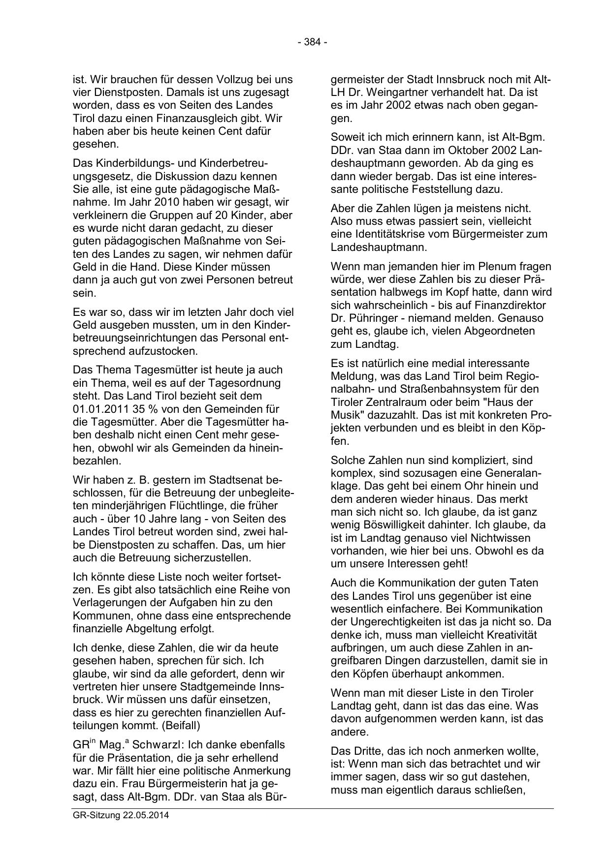dazu ein. Frau Bürgermeisterin hat ja gesagt, dass Alt-Bgm. DDr. van Staa als BürGR-Sitzung 22.05.2014
