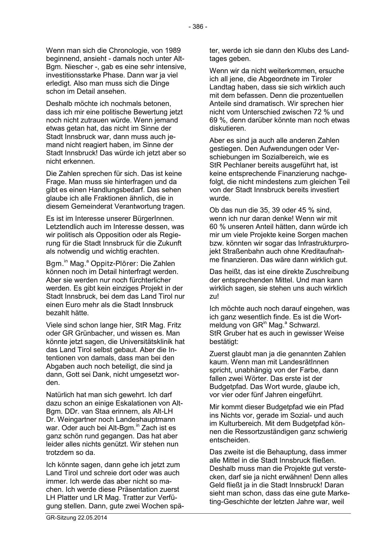 LH Platter und LR Mag. Tratter zur Verfügung stellen. Dann, gute zwei Wochen späGR-Sitzung 22.05.2014