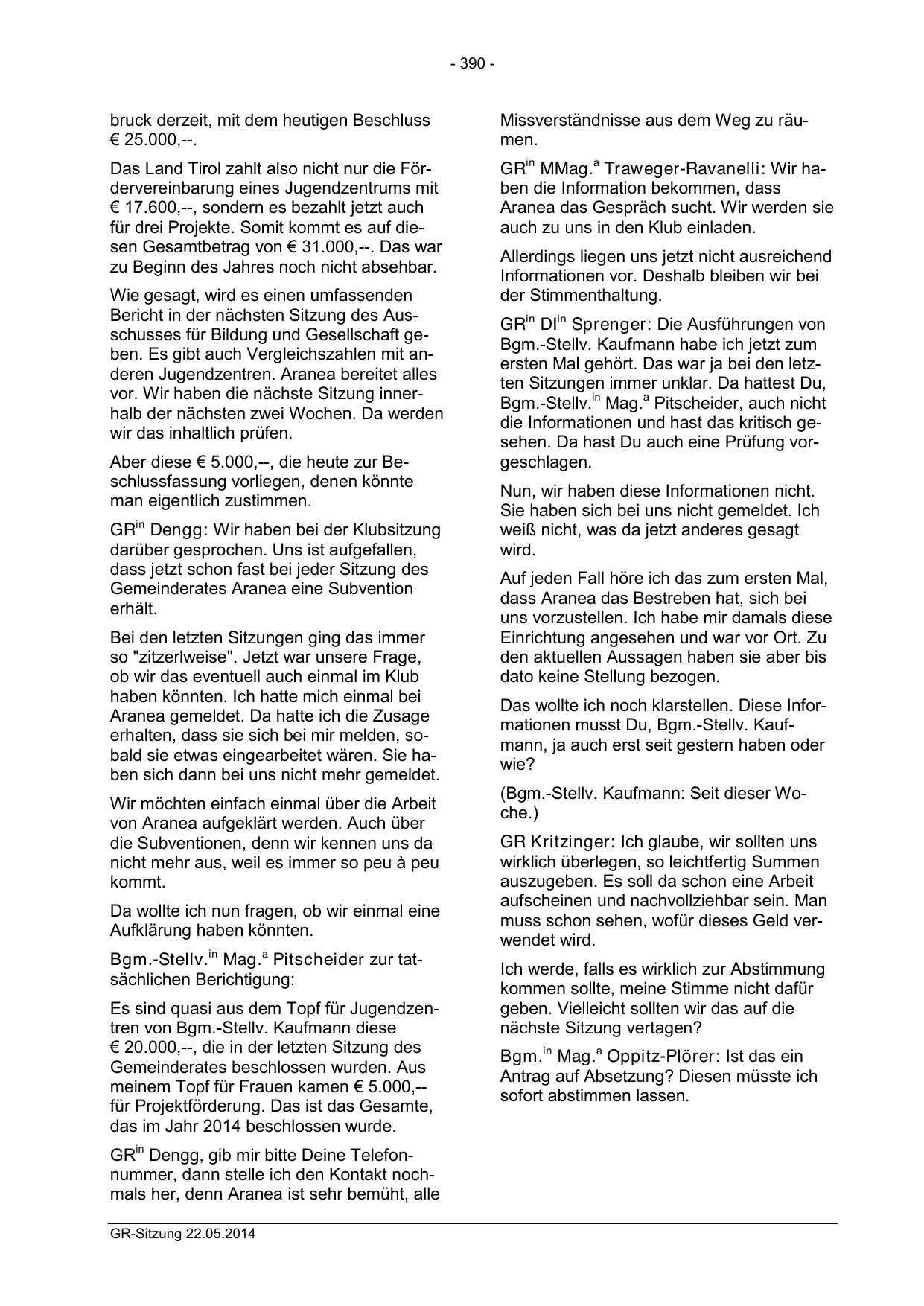 Aber diese € 5.000,--, die heute zur Beschlussfassung vorliegen, denen könnte