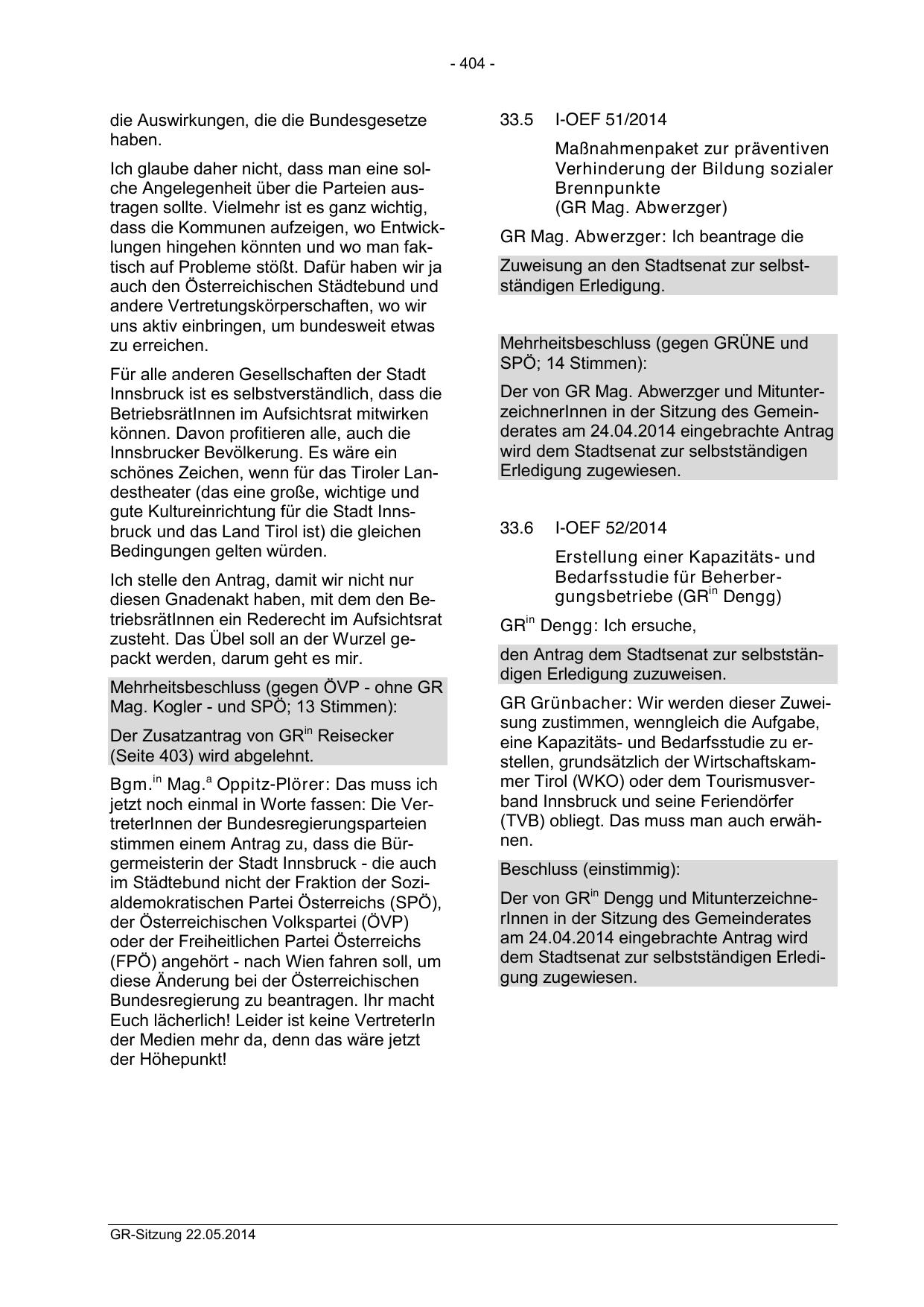 Der von GR Mag. Abwerzger und MitunterzeichnerInnen in der Sitzung des Gemeinderates am 24.04.2014 eingebrachte Antrag