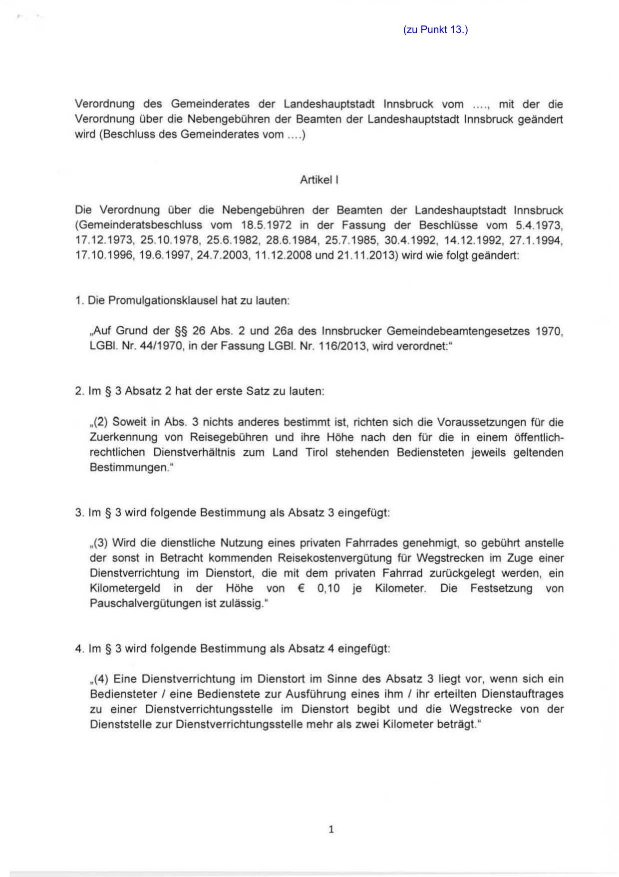 Verordnung Ober die Nebengebühren der Beamten der Landeshauptstadt Innsbruck geändert