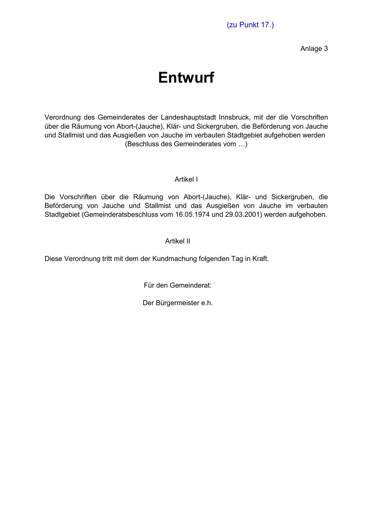 Verordnung des Gemeinderates der Landeshauptstadt Innsbruck, mit der die Vorschriften