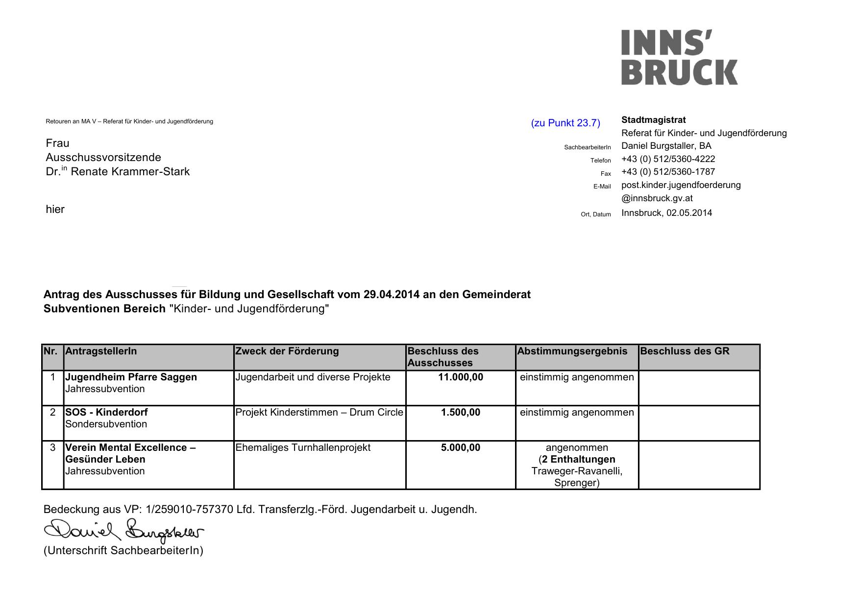 Antrag des Ausschusses für Bildung und Gesellschaft vom 29.04.2014 an den Gemeinderat